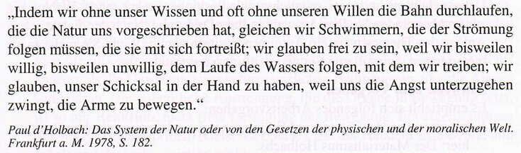 Was man sich auch in metaphysischer Absicht für einen Begriff von der Freiheit des Willens machen mag: so sind doch die Erscheinungen desselben, die menschlichen Handlungen, eben so wohl als jede andere Naturbegebenheit nach allgemeinen Naturgesetzen bestimmt. Die Geschichte, welche sich mit der Erzählung dieser Erscheinungen beschäftigt, so tief auch deren Ursachen verborgen sein mögen, läßt dennoch von sich hoffen: daß, wenn sie das Spiel der Freiheit des menschlichen Willens im Großen betrachtet, sie einen regelmäßigen Gang derselben entdecken könne; und daß auf die Art, was an einzelnen Subjecten verwickelt und regellos in die Augen fällt, an der ganzen Gattung doch als eine stetig fortgehende, obgleich langsame Entwickelung der ursprünglichen Anlagen derselben werde erkannnt werden können. So scheinen die Ehen, die daher kommenden Geburten und das Sterben, da der freie Wille des Menschen auf sie so großen Einfluß hat, keiner Regel unterworfen zu sein, nach welcher man die Zahl derselben zum voraus durch Rechnung bestimmen könne; und doch beweisen die jährlichen Tafeln derselben in großen Ländern, daß sie eben so wohl nach beständigen Naturgesetzen geschehen, als die so unbeständigen Witterungen, deren Eräugnis man einzeln nicht vorher bestimmen kann, die aber im Ganzen nicht ermangeln den Wachstum der Pflanzen, den Lauf der Ströme und andere Naturanstalten in einem gleichförmigen, ununterbrochenen Gange zu erhalten. Einzelne Menschen und selbst ganze Völker denken wenig daran, daß, indem sie, ein jedes nach seinem Sinne, und einer oft wider den anderen, ihre eigene Absicht verfolgen, sie unbemerkt an der Naturabsicht, die ihnen selbst unbekannt ist, als an einem Leitfaden fortgehen und an derselben Beförderung arbeiten, an welcher, selbst wenn sie ihnen bekannt würde, ihnen doch wenig gelegen sein würde.