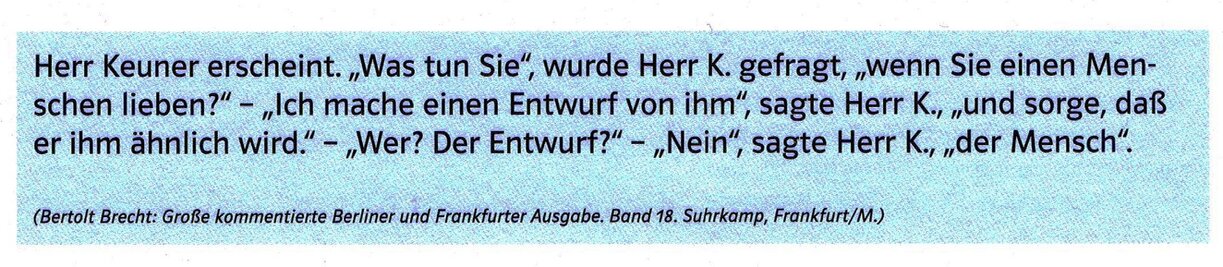 Wer sind wir? Wo kommen wir her? Wohin gehen wir? Was erwarten wir? Was erwartet uns? Viele fühlen sich nur als verwirrt. Der Boden wankt, sie wissen nicht warum und von was. Dieser ihr Zustand ist Angst, wird er bestimmter, so ist er Furcht.[...] Es kommt darauf an. das Hoffen zu lernen. Seine Arbeit entsagt nicht, sie ist ins Gelingen verliebt statt ins Scheitem. Hoffen, über dem Fürchten gelegen, ist weder passiv wie dieses, noch gar in ein Nichts gesperrt. Der Affekt des Hoffens geht aus sich heraus, macht die Menschen weit, statt sie zu verengen. kann gar nicht genug von dem wissen.was sie inwendig gezielt macht, was ihnen auswendig verbündet sein mag. Die Arbeit dieses Affekts verlangt Menschen, die sich ins Werdende tätig hineinwerfen, zu dem sie selber gehören. [...] Primär lebt jeder Mensch, indem er strebt, zukünftig, Vergangenes kommt erst später, und echte Gegenwart ist fast überhaupt noch nicht da.
